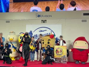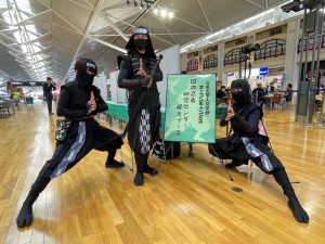 忍者を研究テーマのひとつとする三重大学と、サムライ×ニンジャ空港プロジェクトを展開しております、中部国際空港の締結記念事業として、両日開催されたこの催しでは、武将や忍者を中心に体験や展示コーナー、物産エリアだけではなく、ステージでは何と!